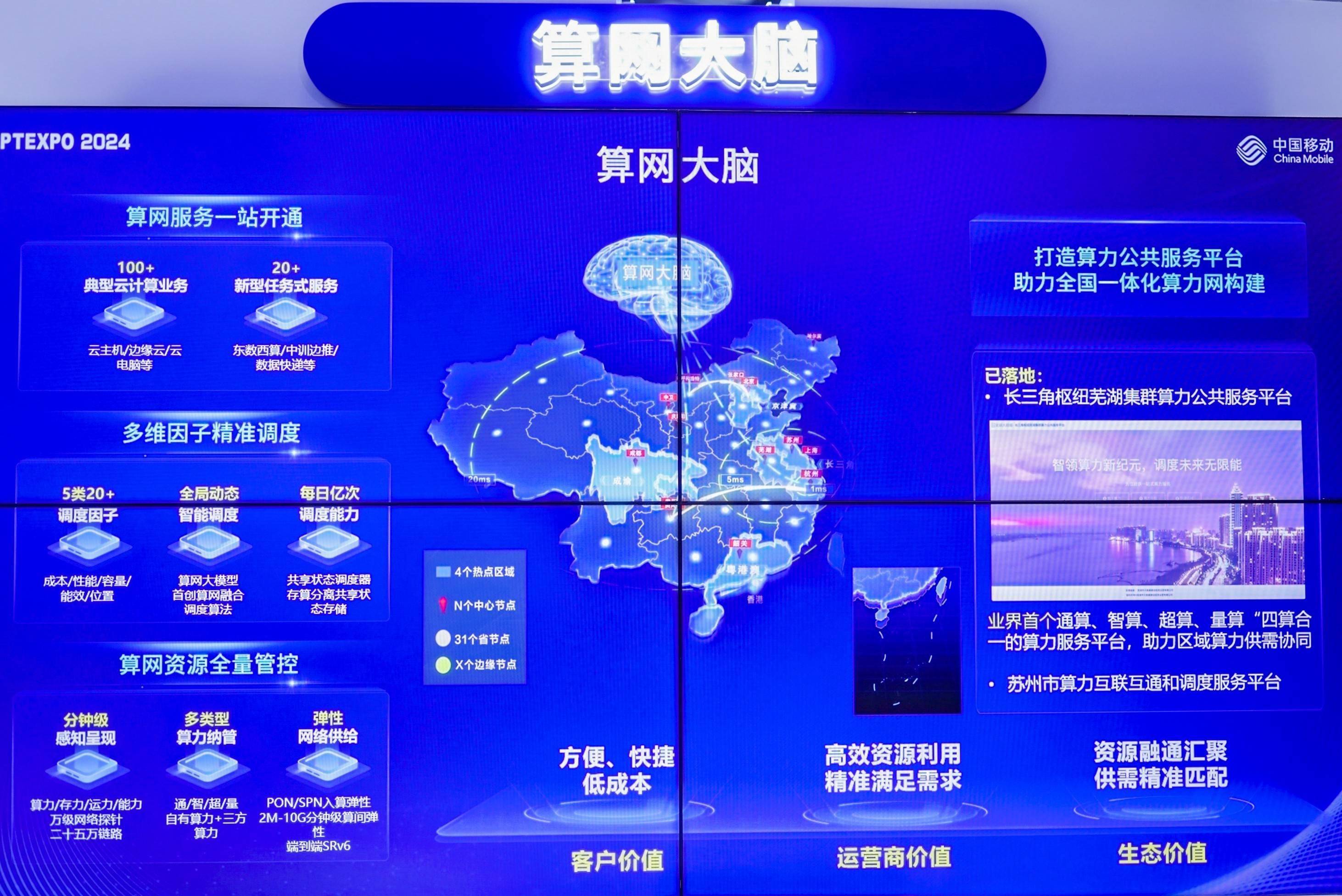 算力作为新型信息基础设施的重要组成部分,是中国移动重点展示的亮点之一。中国移动创新研发的全球首个跨架构通用基础软件平台—“芯合”,已实现图像识别、视频分析等典型智算应用在多家智算芯片间的一键部署和实时流转迁移。同时,中国移动自主研发的COCA 2.0异构计算架构也突破了传统计算架构的限制,以更宏大的AI算力、更高效的链接和更可靠的能力,推动算力新基建能力跃升。在服务器技术创新领域,中国移动同样惊艳众人,新一代“一机多芯”磐石服务器和算网大脑的展出,彰显出中国移动在提升服务器计算效率、智能化升级方面的技术创新。尤其引人注目的,还属全球首个AI交互问答式自动化云资源订购平台的首次亮相,此平台不仅颠覆了传统云计算资源的订购模式,还极大地提升了用户体验。